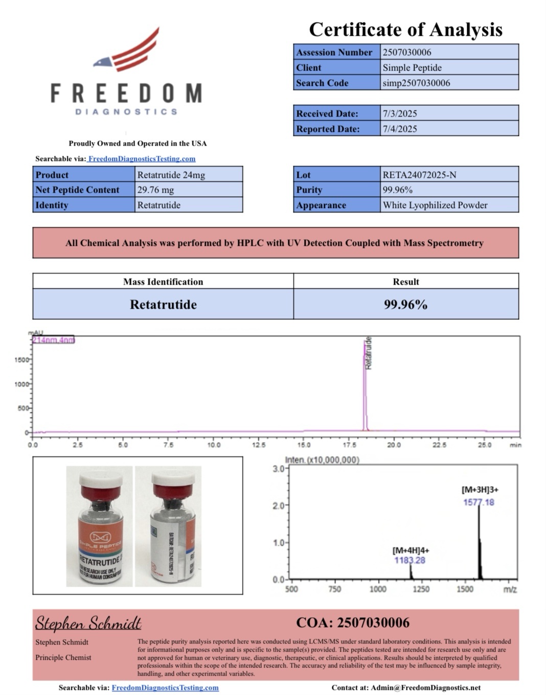 Researchers receive GLP-3RT 24MG as a pure powder, which they mix into a liquid before use. Even though we do not give dosing instructions, scientists can trust the peptide’s high quality, accuracy, and steady results because labs follow strict rules.